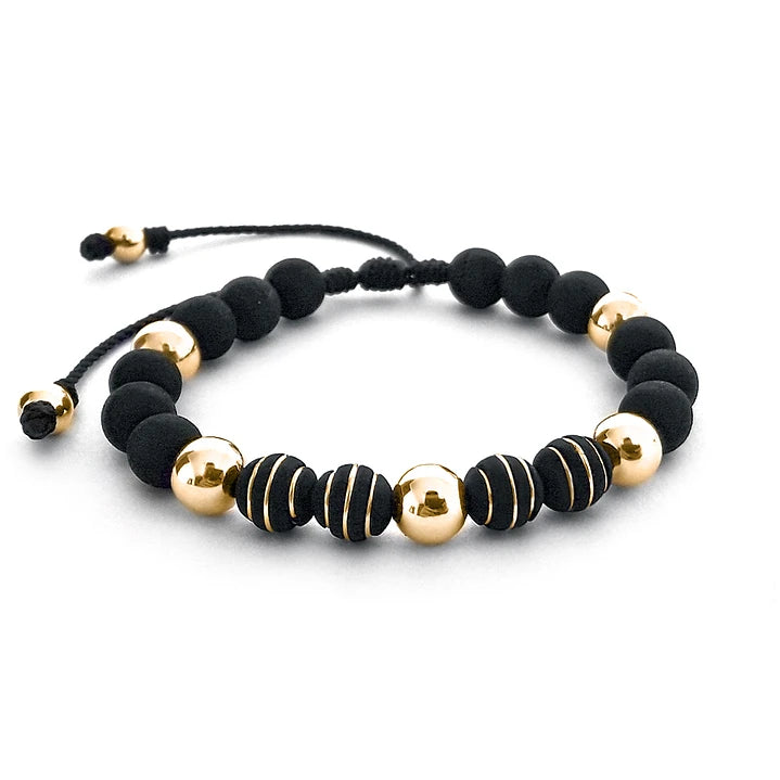 Pulsera Corona Piedra Ónix Oro Laminado 18K