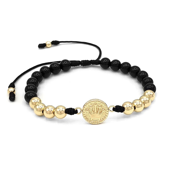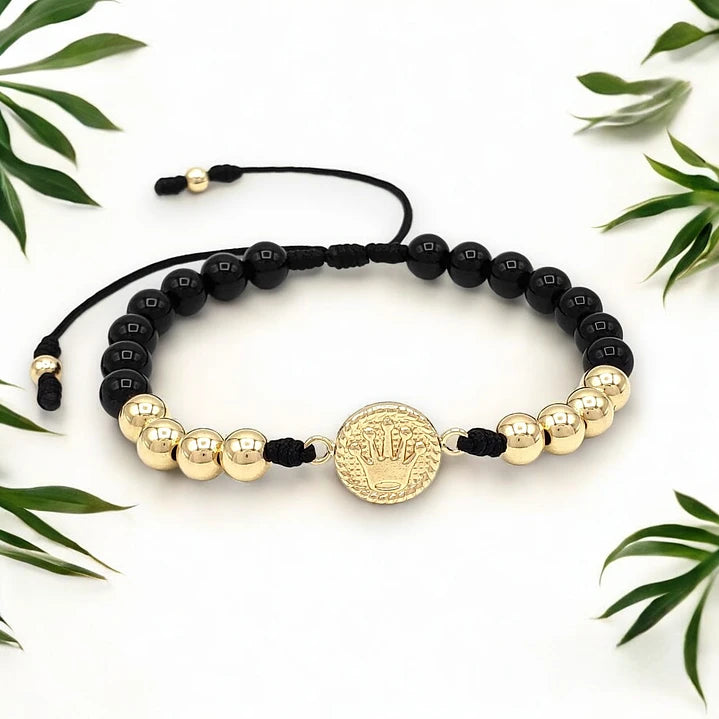 Pulsera Corona Piedra Ónix Oro Laminado 18K