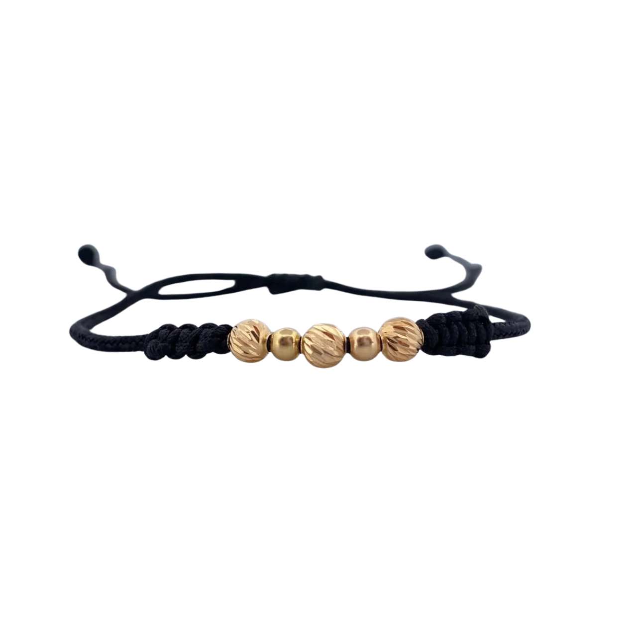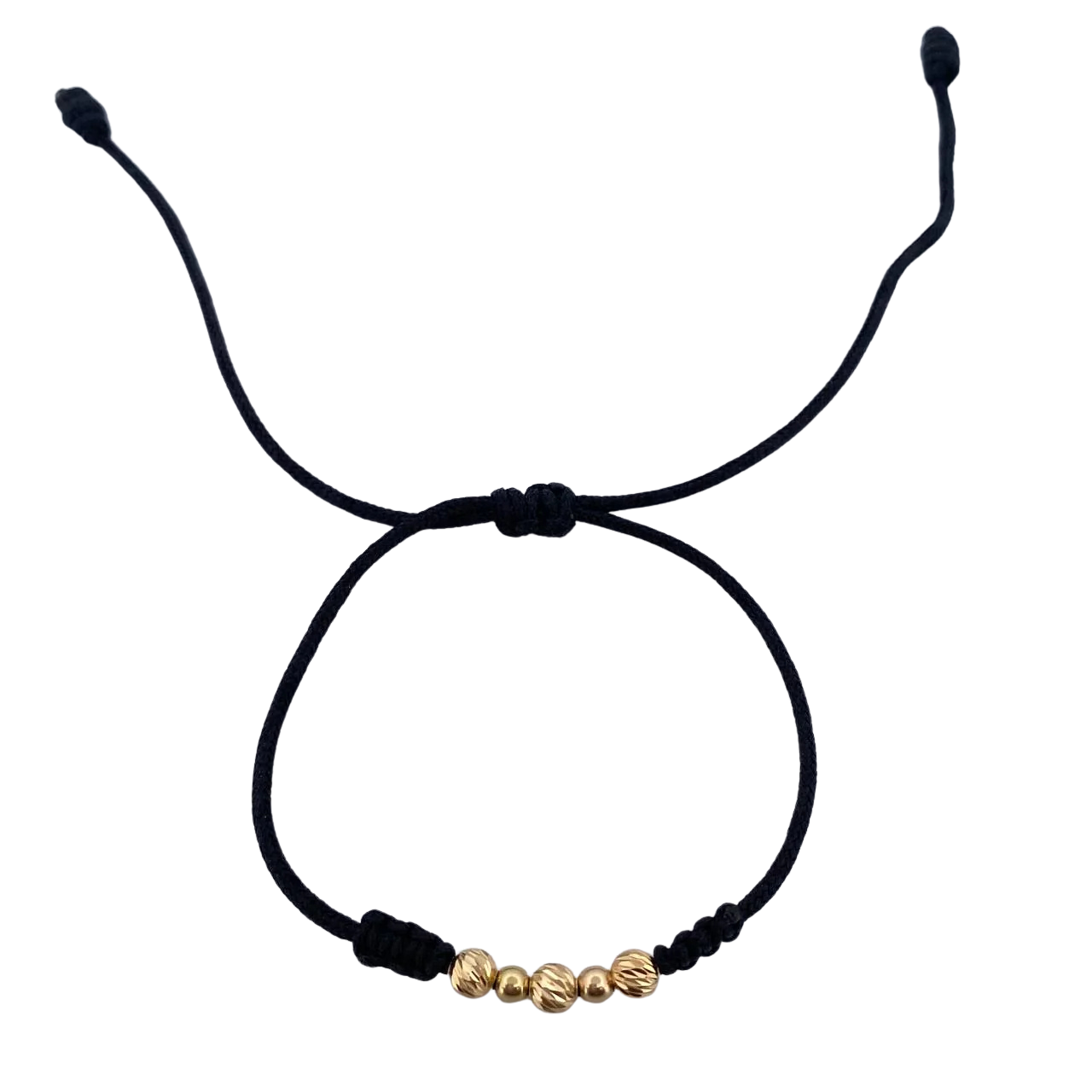 Pulsera Negra 3mm-4mm 5 Und Bolas Lisas Diamantada Oro Laminado 18K